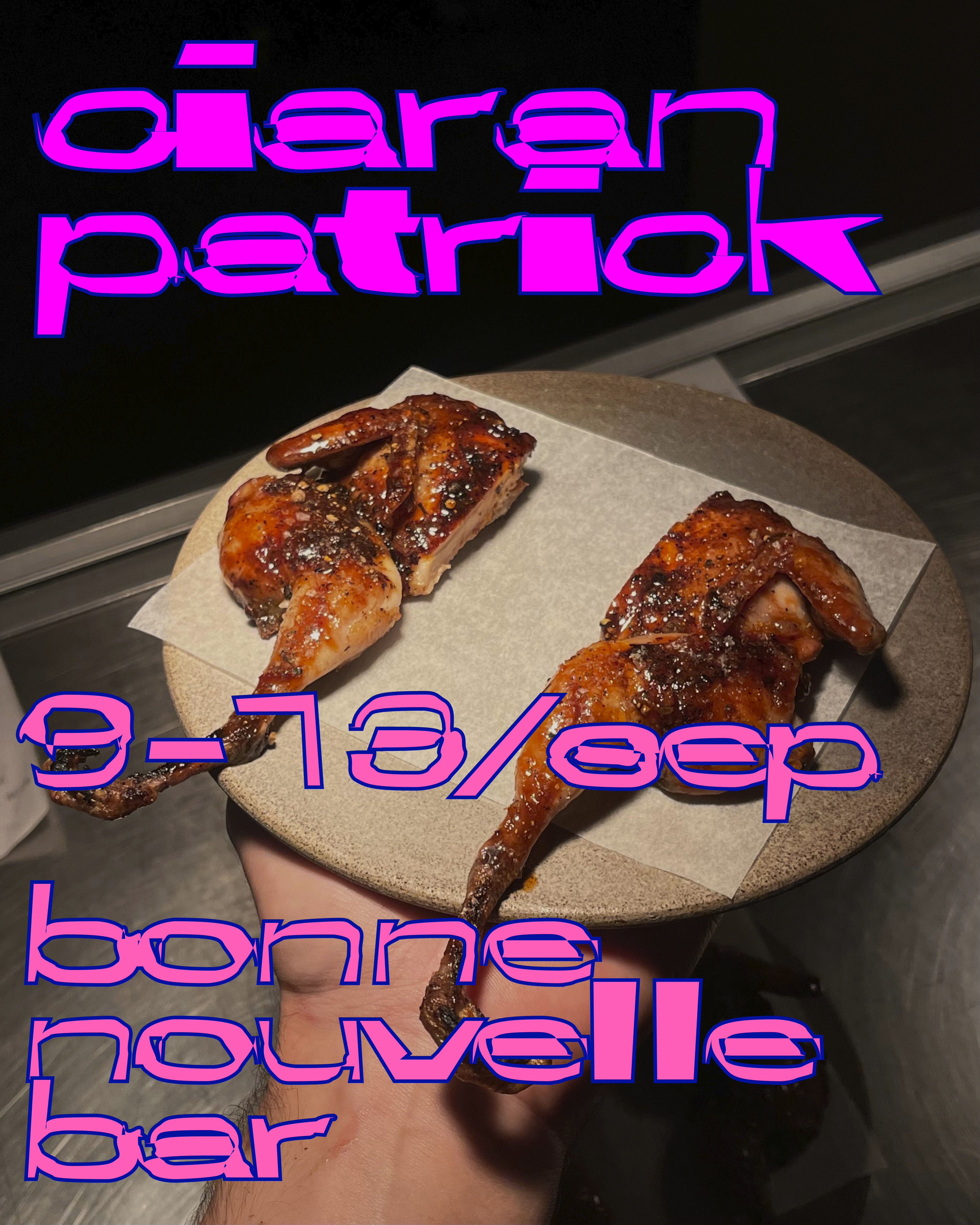 Ciaran Patrick is an Irish chef best known for his cooking at @4850nl in Amsterdam. Since leaving this, Ciaran has pursued a number of pop ups; @lesoeillets.paris (Paris), @delicatessenplace (Paris), @otto_berlin (Berlin), @chenin.bkk (Bangkok) and @bodega.restobar (Amsterdam) to name a few.